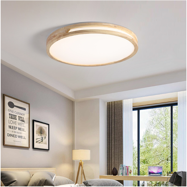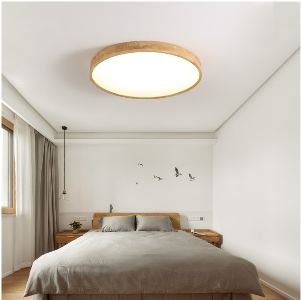 北欧圆形吸顶灯闪电客现代简约创意led客厅灯超薄主卧室灯日式实木灯具_838