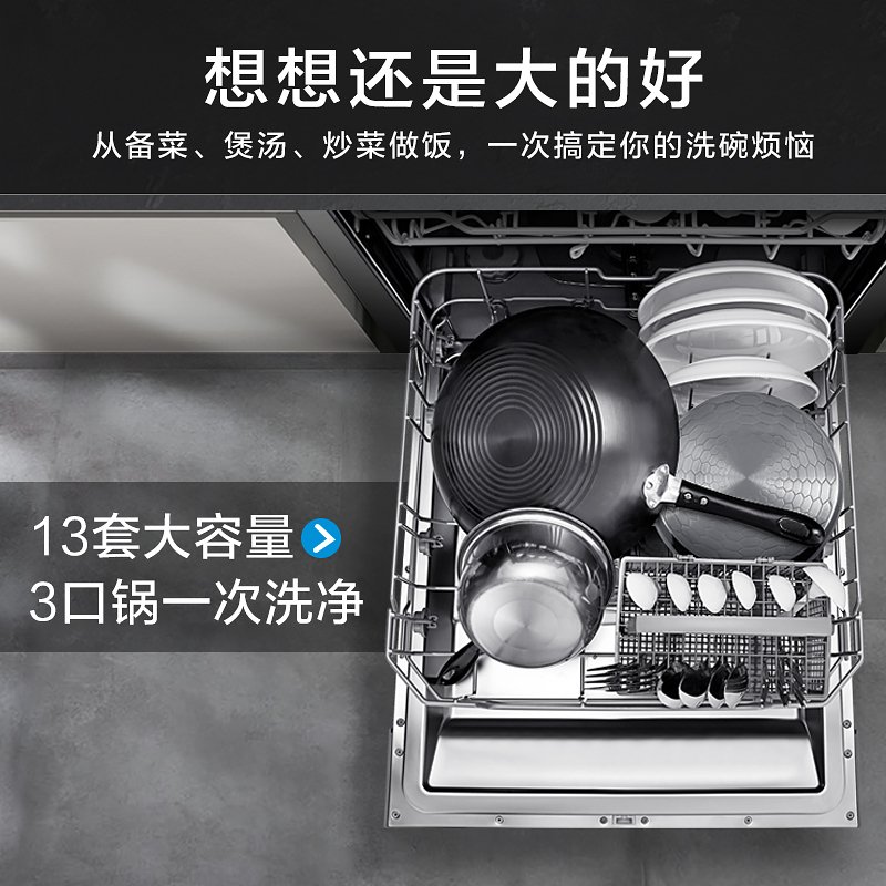 这款美的洗碗机,拥有13套的大容量,一次可以满足全家人的洗涤需求。同时它采用了嵌入式的设计,可以有效节省空间,让厨房看起来更加整洁美观。另外它还拥有wifi智能操控功能,只需轻轻一按,就能随时掌控洗碗状态,十分方便。