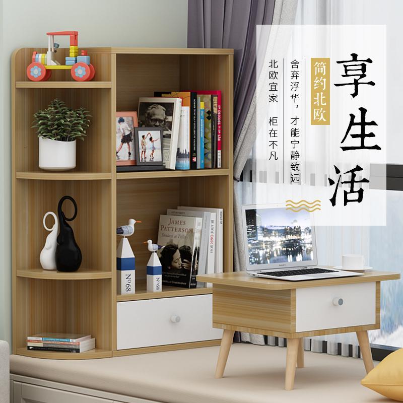 飘窗柜储物柜书桌书柜闪电客一体组合卧室书架窗台柜小置物架阳台收纳柜 五层黑色左款_494_703
