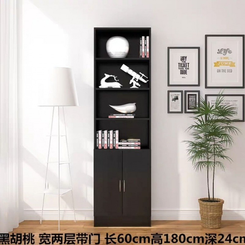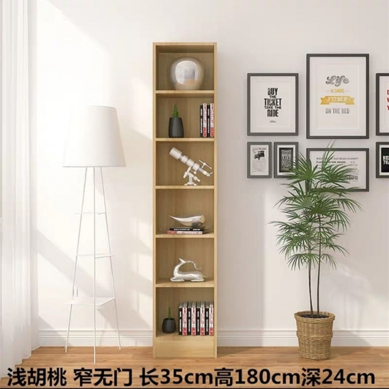 定做简约书架书柜收纳柜储物柜落地儿童小书柜置物架窄柜支持定制定制 浅胡桃色 宽双层门60✘24✘180_793