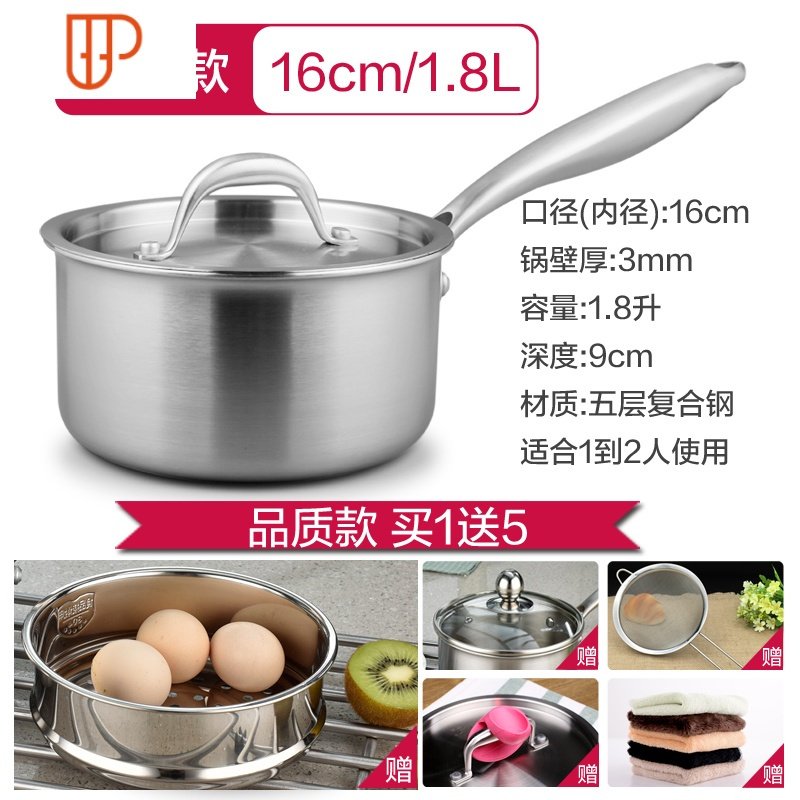 德国不锈钢奶锅304加厚16 18cm不粘小汤锅煮面热奶锅婴儿辅食 国泰家和 内径16cm(加送蒸屉2YE1V1