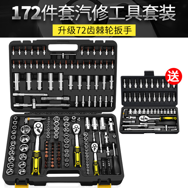 套筒套管棘轮扳手套装五金闪电客汽车修理维修修车工具箱多功能组合 【汽修王者】172件套升级72齿黄柄黑盒【送46件套】