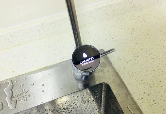 出水龙头也是非常重要的部件,因为它是净水器唯一露在外面,天天和用户打交道的东西。这款龙头造型很优雅,最重要的是阀门上会有一块显示屏幕,使用时可以点亮,并显示滤芯使用状态和厂家的联系方式,很有科技感,忍不住套用一句“高端大气上档次”。