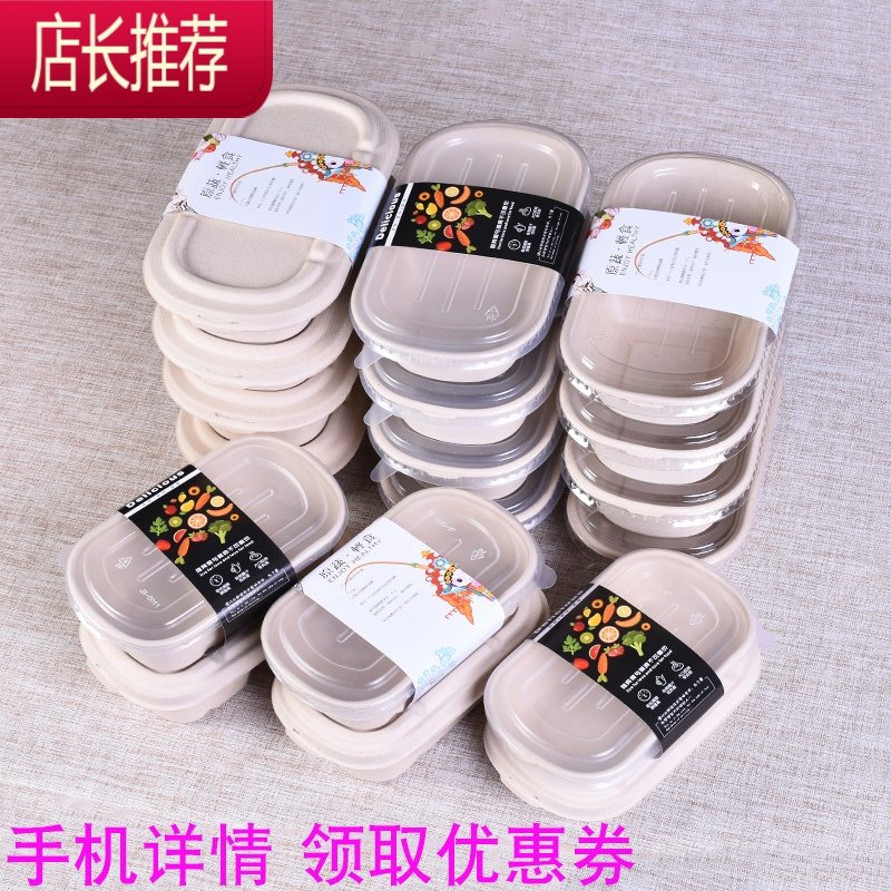一次性可降解秸秆餐具纸浆餐盒沙拉健身餐外卖打包便当盒快餐JING PING 全透明单格500毫升50套 秸秆套