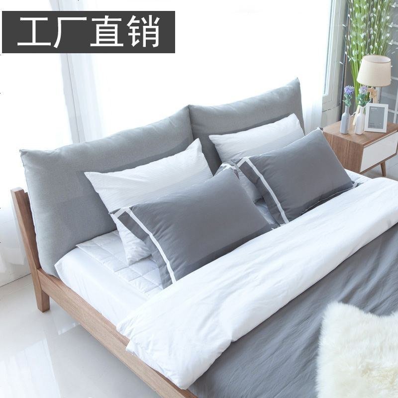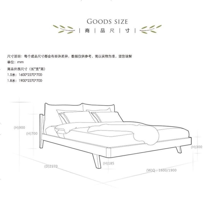 胡桃木色北欧实木床1.5米卧室木床简约现代双人床1.8米主卧布床 1800mm*2000mm_原木色床+椰_2_196