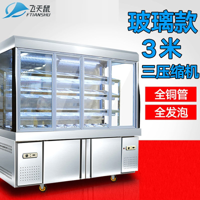 飞天鼠(FTIANSHU) 麻辣烫展示柜点菜柜立式冰箱风幕柜熟食柜冷藏冷冻双温蔬菜水果保鲜柜冒菜 3米三压玻璃门