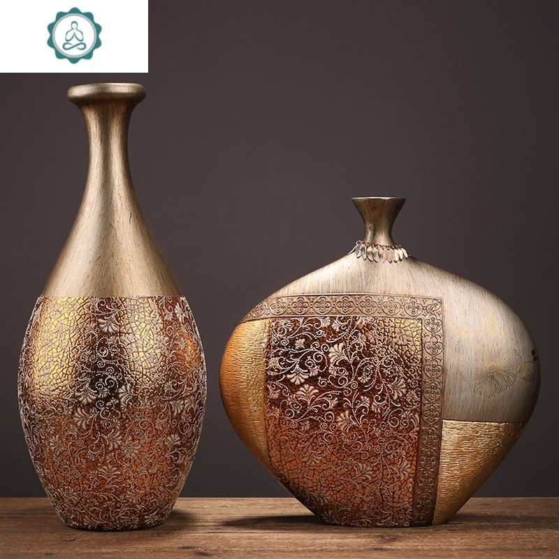 新中式花瓶创意家居装饰品客厅电视柜玄关样板间摆件贴花花器 封后 矮款树脂高35cm