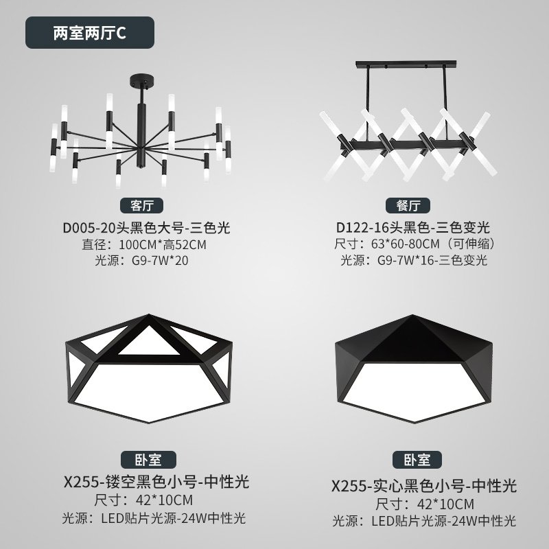 后现代客厅吊灯成套组合套装闪电客轻奢风卧室餐厅两室两厅全屋灯具套餐 米白色两室两厅C